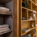 Es gibt 1 Badezimmer mit einem Bidet und einer Dusche. Ein Haartrockner sind ebenfalls vorhanden.